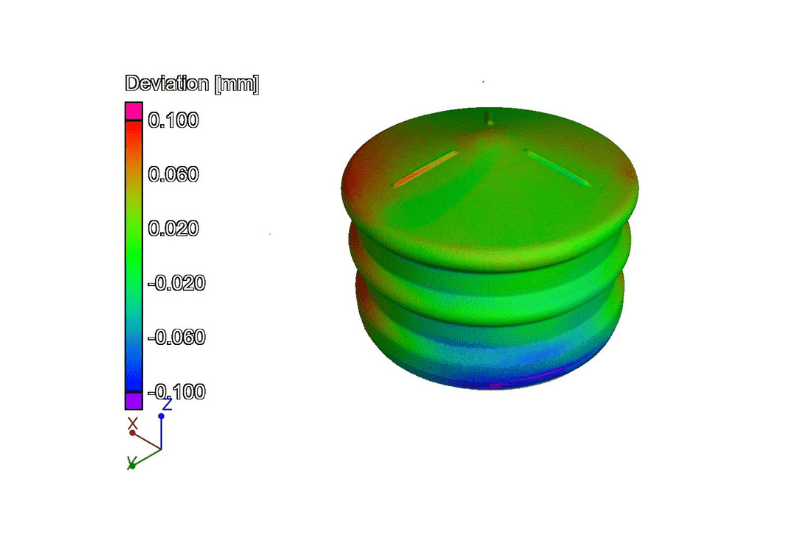 Verificación dimensional por gradiente de colores respecto a CAD.